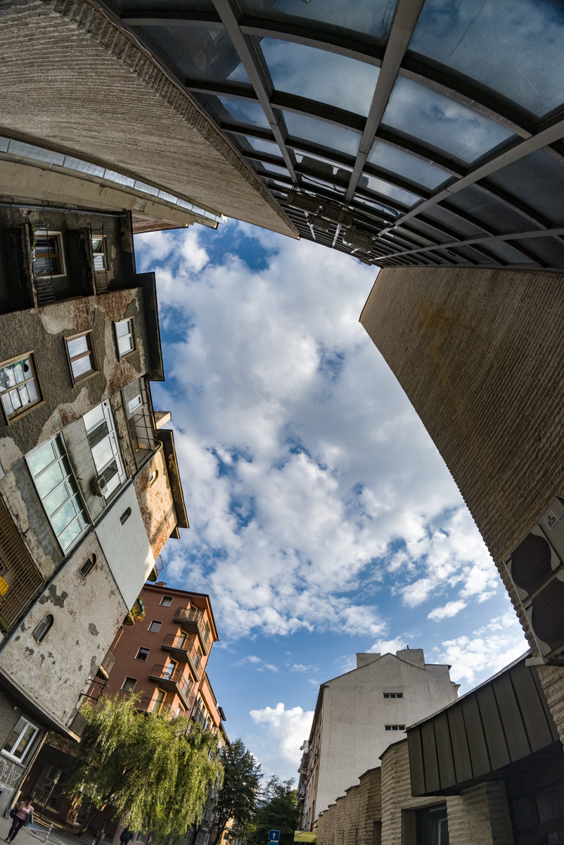 Доста си поиграх с нея и като фотокамера и поснимах в мой си стил градски пейзаж. Харесва ми това, че Insta360 ONE R може да снима освен в Jpeg и в RAW (DNG) и после да обработя снимките в по-сериозен софтуер. Недостатък, който открих при снимането в RAW е, че се вижда в единия ъгъл затъмняване от предпазното стъкло. Явно е, че производителят знае за този проблем, защото Jpeg изображенията, освен малко напомпани цветово, са и леко кропнати (може да видите пример). При снимане в съотношение 16:9 този проблем не съществува, но тогава снимате на по-ниска от пълната резолюция.