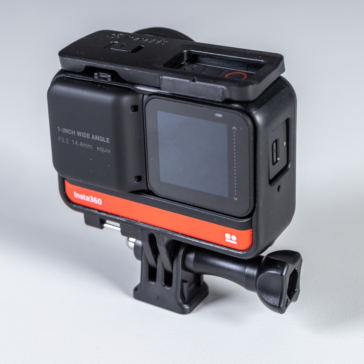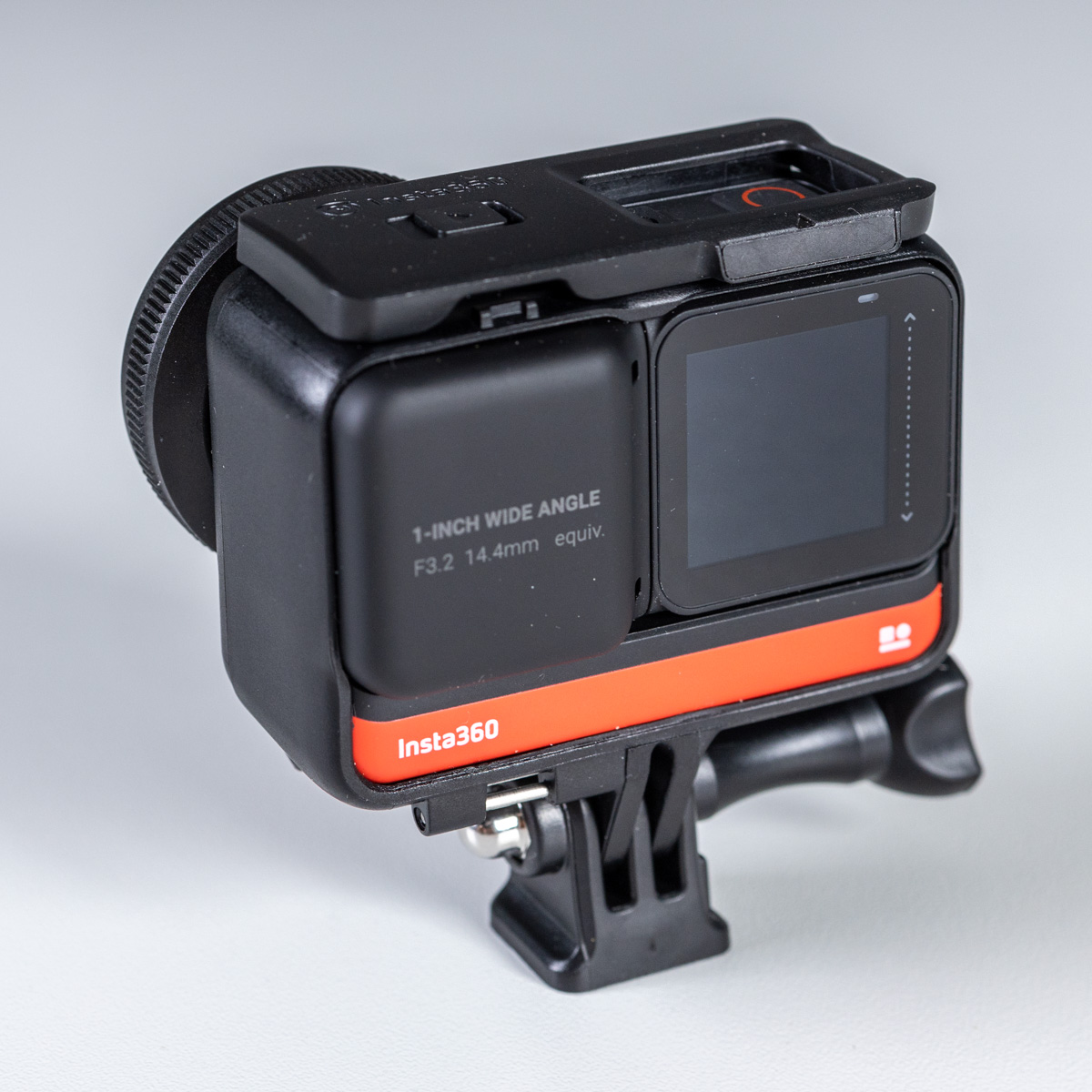 Споменах зрителен ъгъл. Обективът на Insta360 ONE R едноинчова версия е Super Elmar (14,4 милиметра, приравнен към 35 мм стандарт матрица) с диафрагма 3.2. Явява се пълнокадров фишай и има опция ъгловия му обхват да се намали до 4 пъти. Това не става оптично, а със смарт кропване и интерполиране на изображението. Почти не личи да има влошаване при това 4-кратно интерполиране, дори и когато снимате на 5.3К резолюция. Всъщност, Insta360 ONE R снима винаги на максимален ъгъл, независимо дали сте избрали 4 кратно приближение. В момента, в който отворите файла в софтуера, може да изберете който искате от 4 те зрителни ъгъла, независимо на какъв сте снимали реално. Възможно е в бъдеще да се появят конвертори, които да се завинтват на мястото на предпазното стъкло и така да има оптична промяна на зрителния ъгъл.
